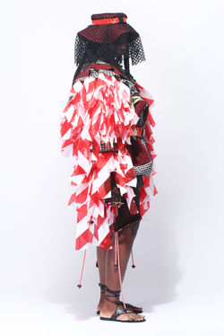 W/W juxtaposes their warrior dress with that of the Western sniper. Theirs is colorful and proud. Ours is a camouflaged ghillie suit. Through this creative process, we learned about the collective of our feminism.